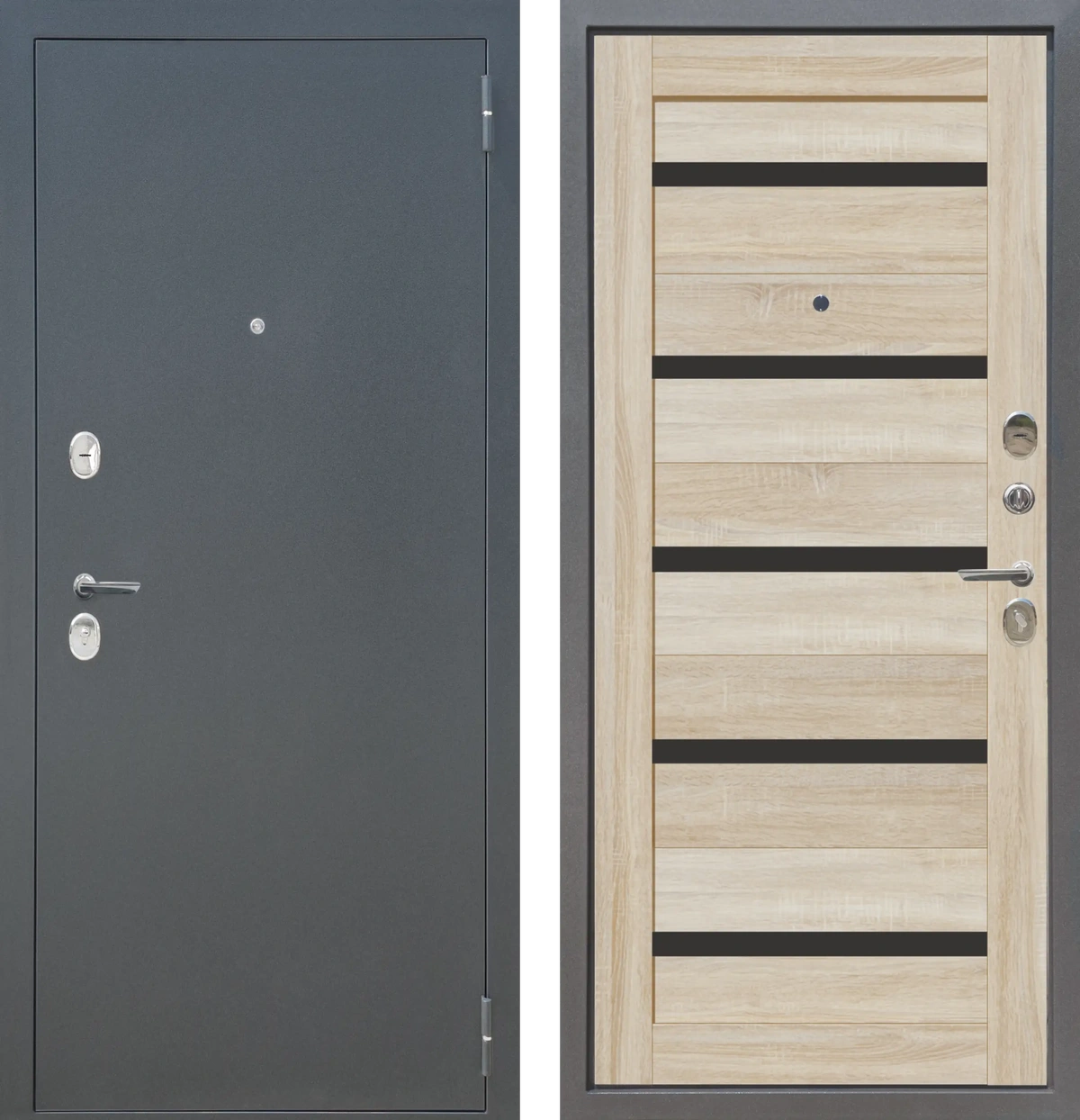 Входные двери M4 ФЛ Букле графит - СБ-1 Дуб Сонома светлый